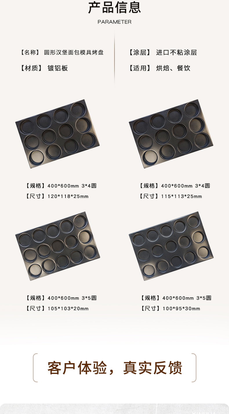 15连24孔圆形汉堡唱片面包模具烤盘
